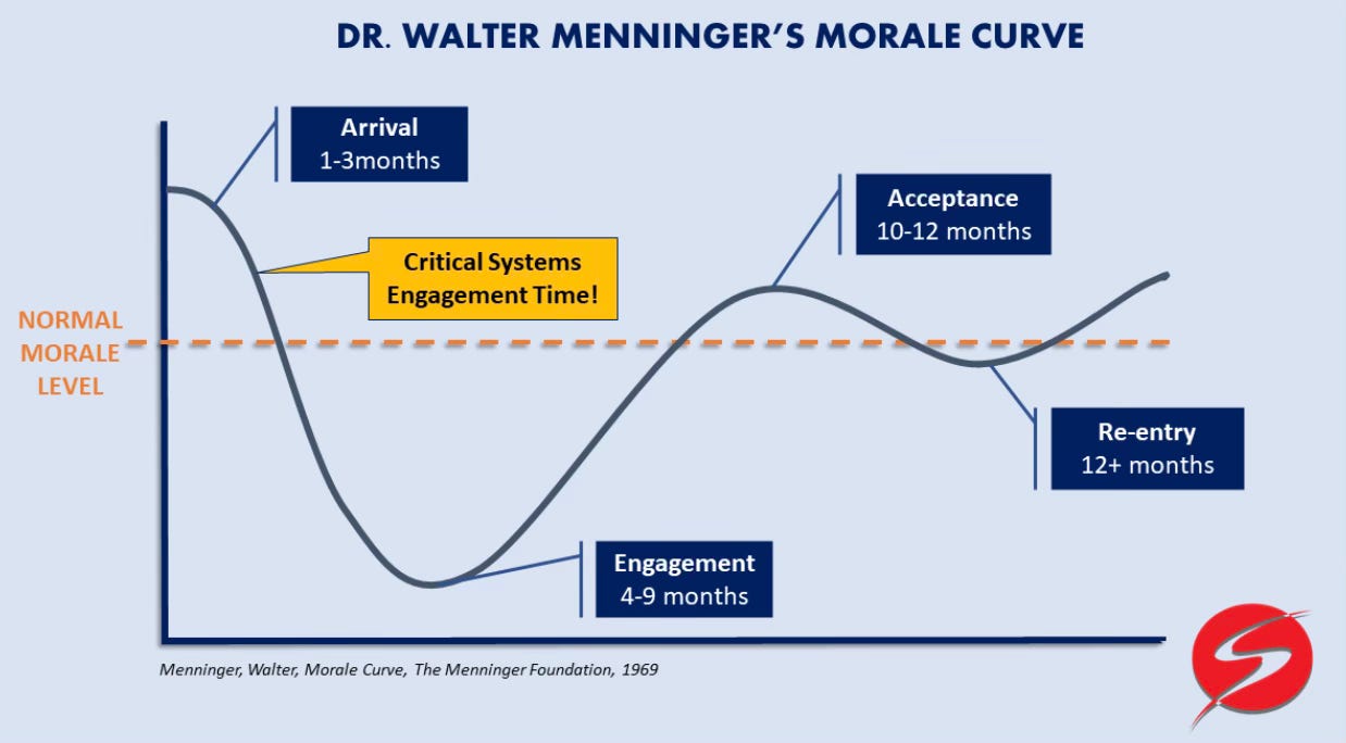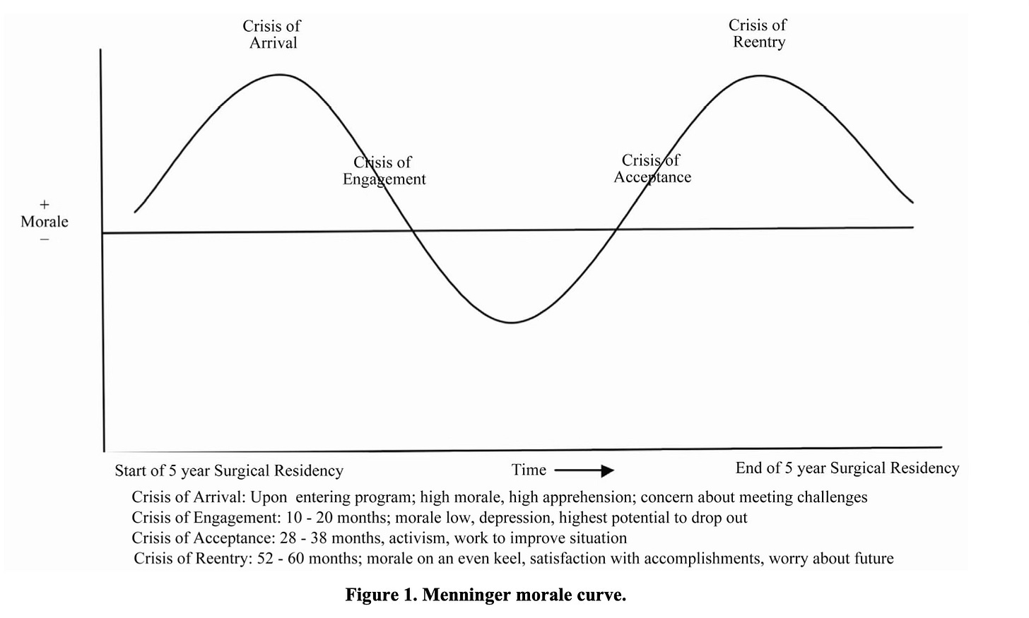 Renowned psychiatrist Walter Menninger was contracted by the early Peace Corps to research the challenges faced by volunteers when they returned to the U.S. The Menninger Morale Curve was the result.