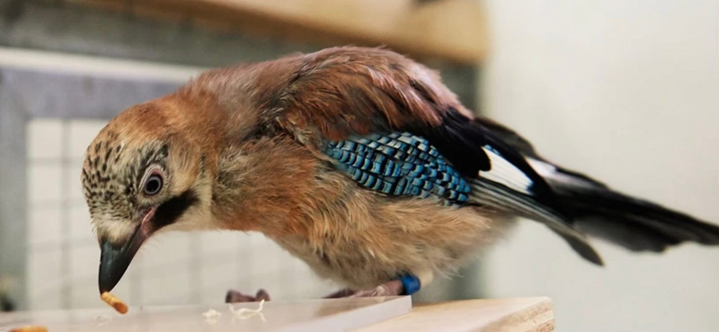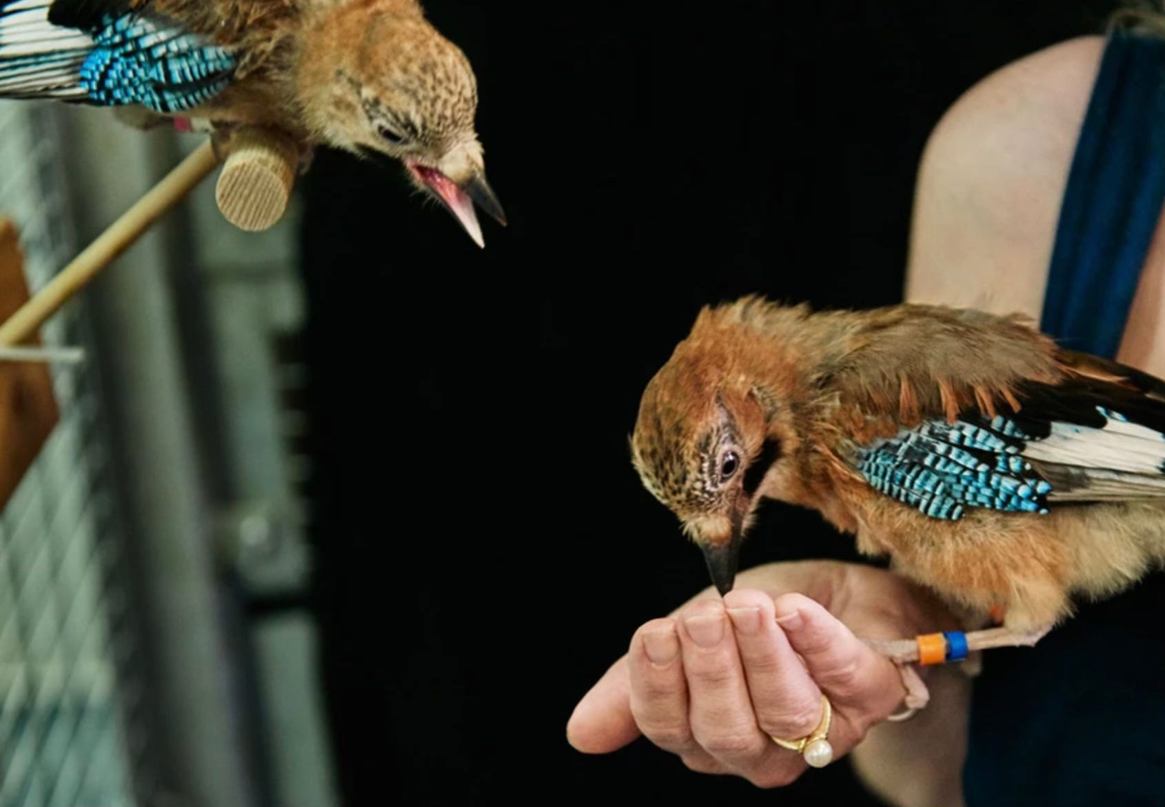 Researcher Nicky Clayton with captive Eurasian Jays. Photo: Trevor Ray Hart